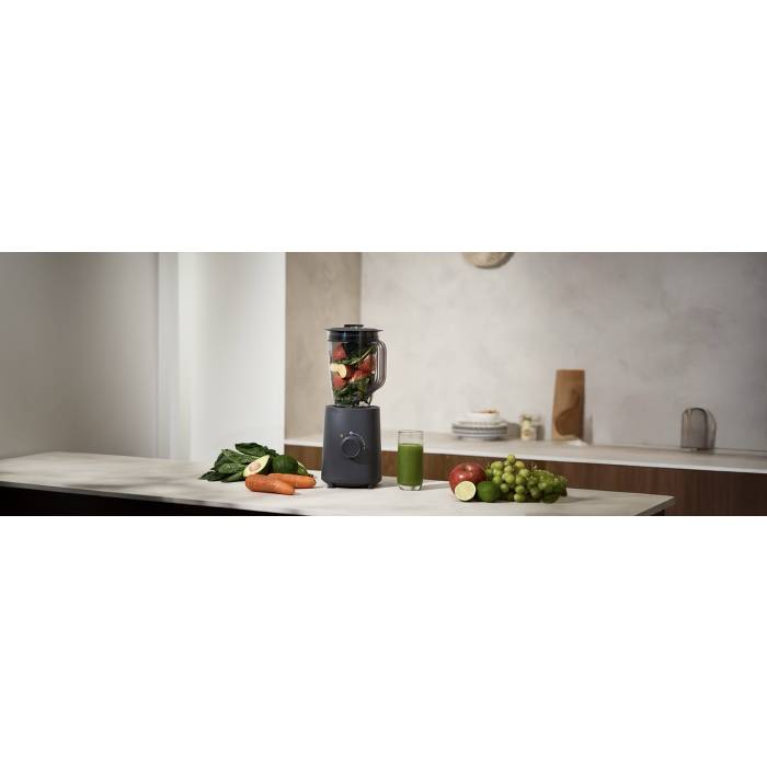 Elegantna, zakrivljena silueta stolnog blendera dodaje dašak sofisticiranosti svakoj kuhinji, a istovremeno održava čistu, minimalističku estetiku.