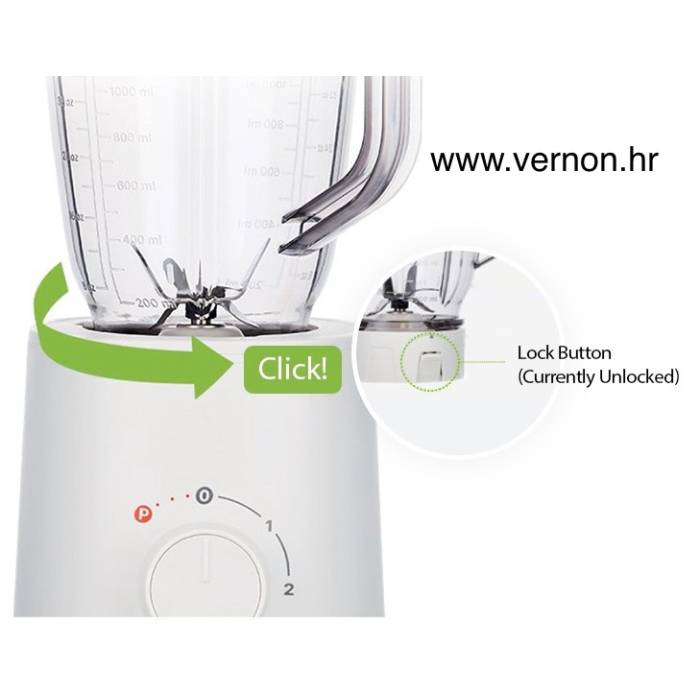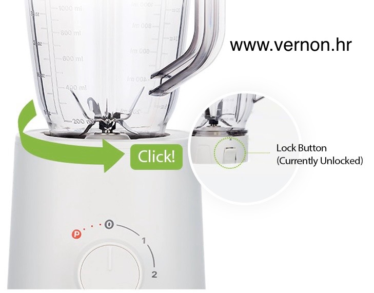 Blender radi tek nakon što se čuje siguran zvuk zaključavanja 'klik' koji potvrđuje pravilnu montažu.